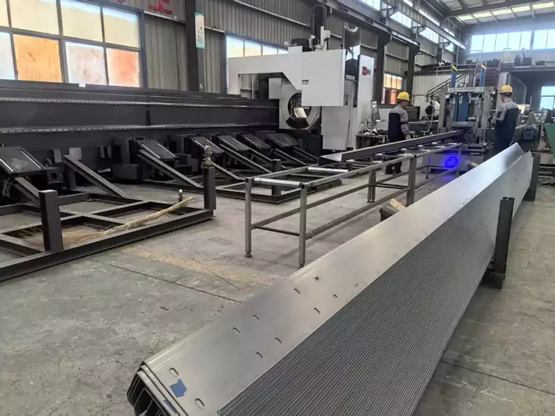 2. पंचिंग: सीएनसी पंचिंग एकाइसँग सुसज्जित, यसले ± ०.२ मिमीको प्वाल व्यास सहिष्णुता र ± ०.३ मिमीको प्वाल स्पेसिङ सटीकताको साथ, वेब र फ्ल्याङ्गहरूको बहु-कोण पंचिंग समर्थन गर्दछ। यसले यूएस मानक सी-सेक्शन स्टिल जडान ढाँचाहरू (जस्तै सिम्पसन स्ट्रङ्ग-टाई एडाप्टर होलहरू) अनुरूप प्वालहरू पनि उत्पादन गर्न सक्छ।