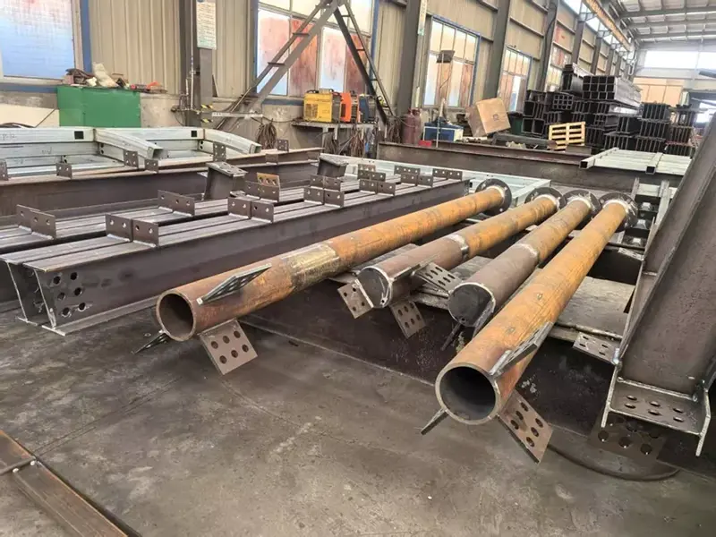 The steel is prefabricated in the processing plant according to the design drawings by cutting, welding, drilling, etc. to make various components, such as steel beams, steel columns, purlins, etc. During the prefabrication process, the processing technology standards are strictly implemented to ensure the dimensional accuracy of the components. उदाहरण को लागी, स्टील किरण को लागी जब फ्ल्याट प्लेट र वेब प्लेट बीचको दूरी, वेल्डिंग गुणवत्ता, आदि विकासशील गुणवत्ताहरु को आवश्यकताहरु को आवश्यकता पूरा गर्न पर्छ। प्रशोधित कम्पोनेन्टहरू गन्न र सजिलो यातायात र साइट सम्मेलनको लागि चिह्न लगाइन्छ।